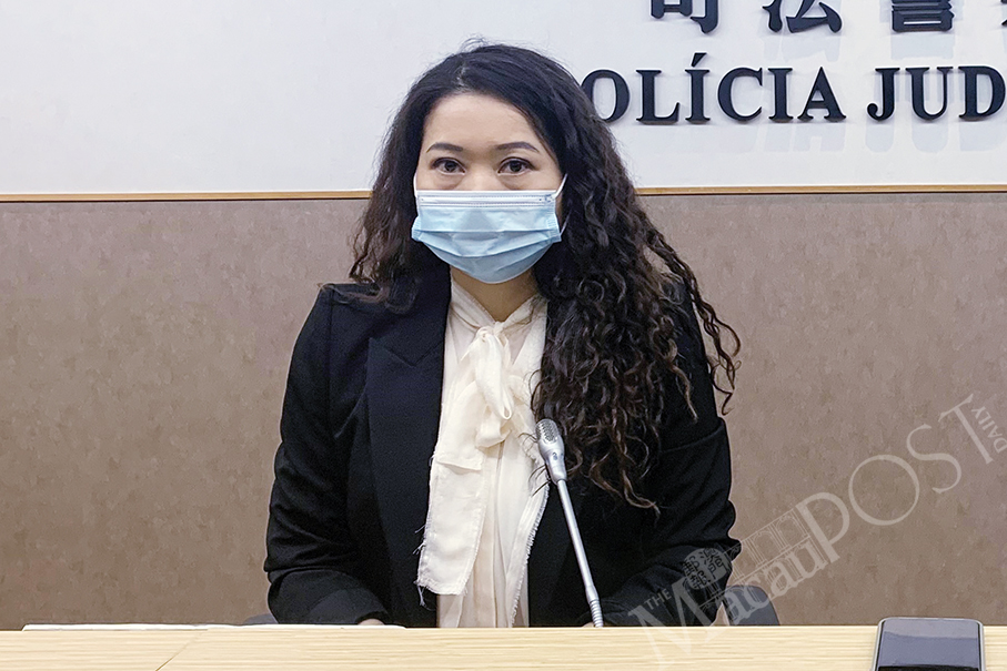 Judiciary Police (PJ) spokeswoman Lei Hon Nei looks on during yesterday’s press briefing at the PJ headquarters. Photo: Camy Tam