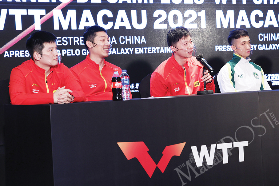 This handout photo provided by the Sports Bureau (ID) yesterday shows some of the players from the mainland and Macau who will be competing in the four-day WTT Champions Macao 2021 China Stars from today.