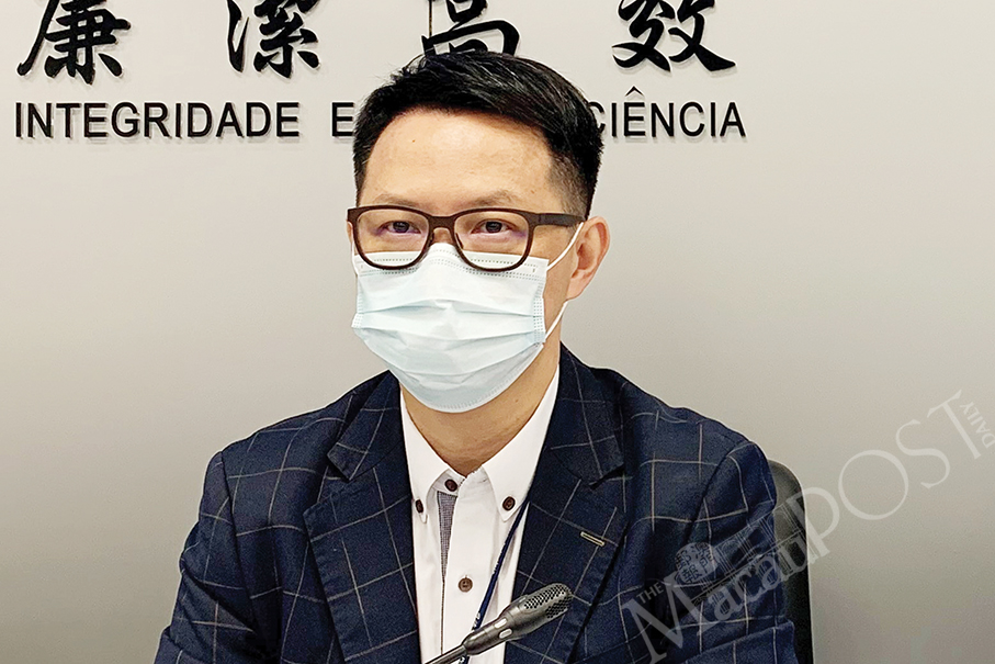 Judiciary Police (PJ) spokesman Ho Chan Nam looks on at a press conference yesterday at the Public Security Police (PSP) pressroom.