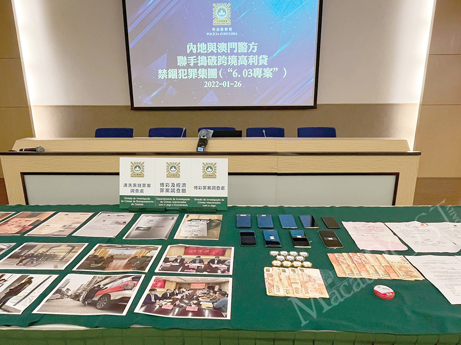 The Judiciary Police and the mainland Public Security Bureau (PSB) jointly busted a cross-border loan-sharking and debt-collecting gang last month, arresting six suspects in Macau and 40 suspects in the mainland, Judiciary Police (PJ) spokesman Ho Chan Nam said at a special press conference yesterday.