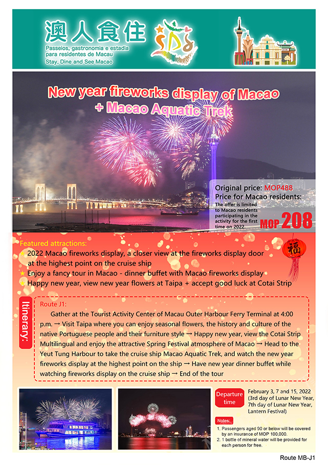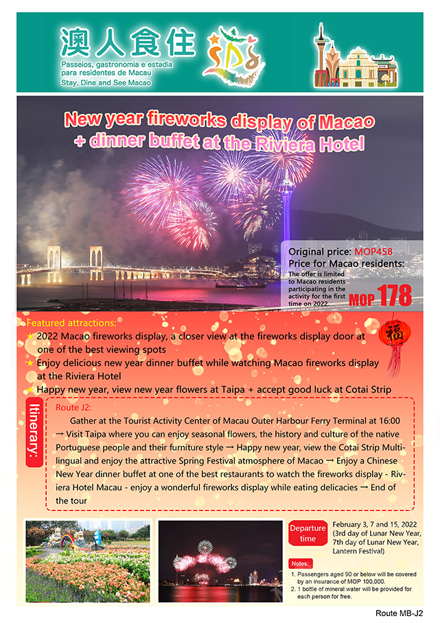 The Macau Government Tourism Office (MGTO) announced in a statement on Friday that it is launching two limited tours for the Chinese New Year (CNY) for its “Stay, Dine and See Macao” project that incorporates the upcoming firework shows.