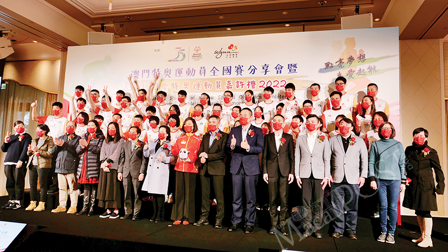 The “National Games Sharing of Macau Special Olympics Athletes & Macau Special Olympics Athletes Award Ceremony by Wynn Care 2022” was held yesterday at Wynn Palace’s conference venue in Cotai. A statement by the Macau Special Olympics (MSO) quoted its Executive Director Hetzer Siu Yu Hong as saying that he was looking forward to bringing a new vision and development for local athletes with disabilities to the 2025 National Paralympic Games and Special Olympics.