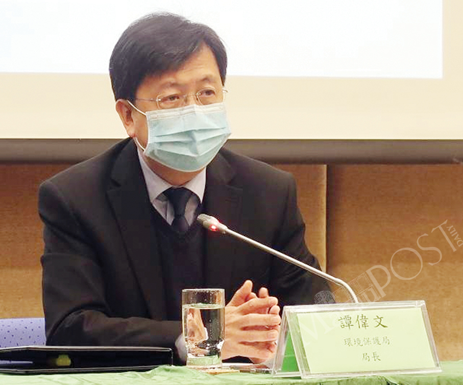 The Environmental Protection Bureau (DSPA) Director Raymond Tam Vai Man addresses yesterday’s press conference at its headquarters. Photo courtesy of TDM