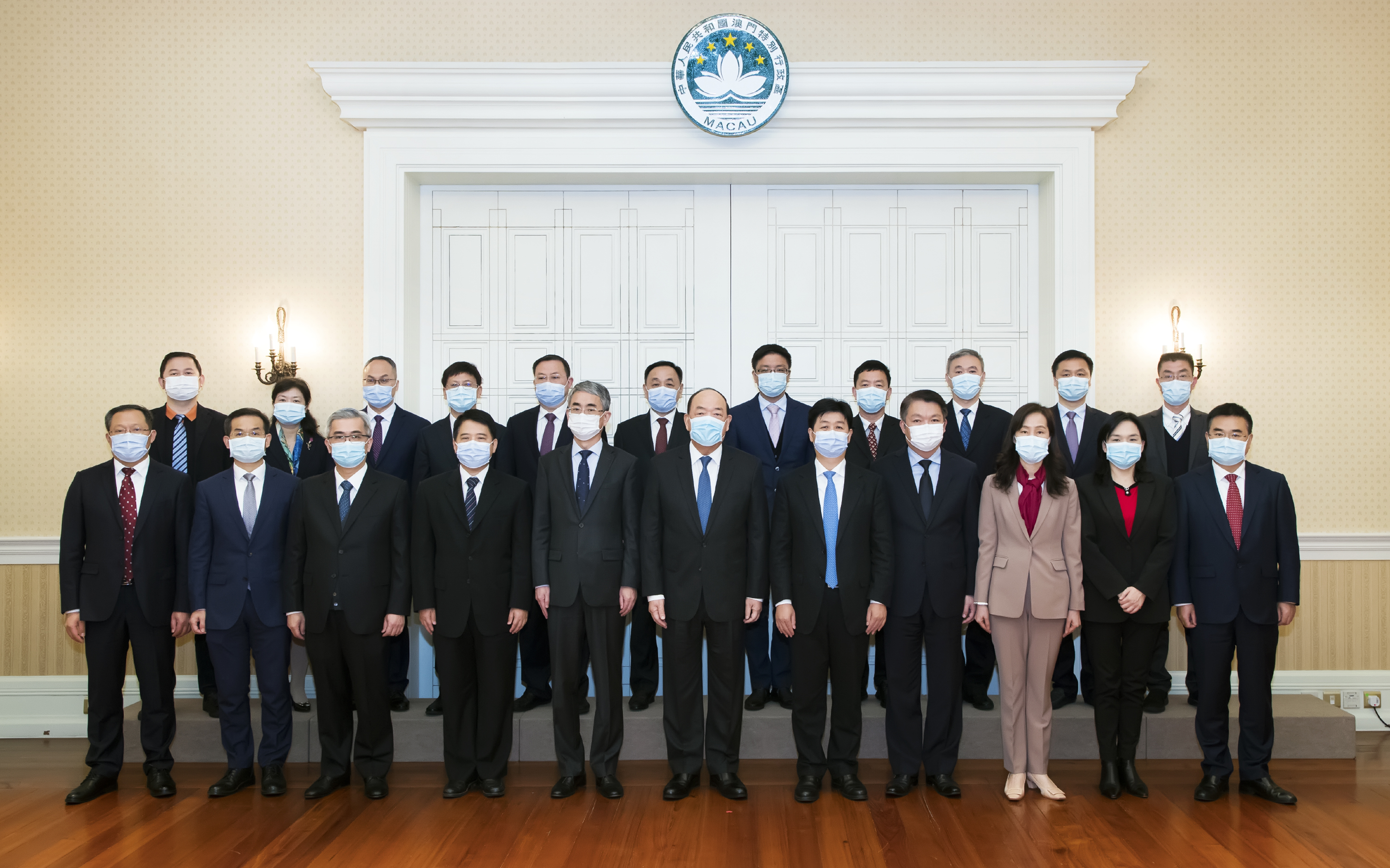 Other Macau officials present at the meeting included Secretary for Administration and Justice Andre Cheong Weng Chon, Secretary for Economy and Finance Lei Wai Nong, Secretary for Security Wong Sio Chak, Secretary for Social Affairs and Culture Ao Ieong U, and Chief-of-Office of the Chief Executive’s Office Hoi Lai Fong.