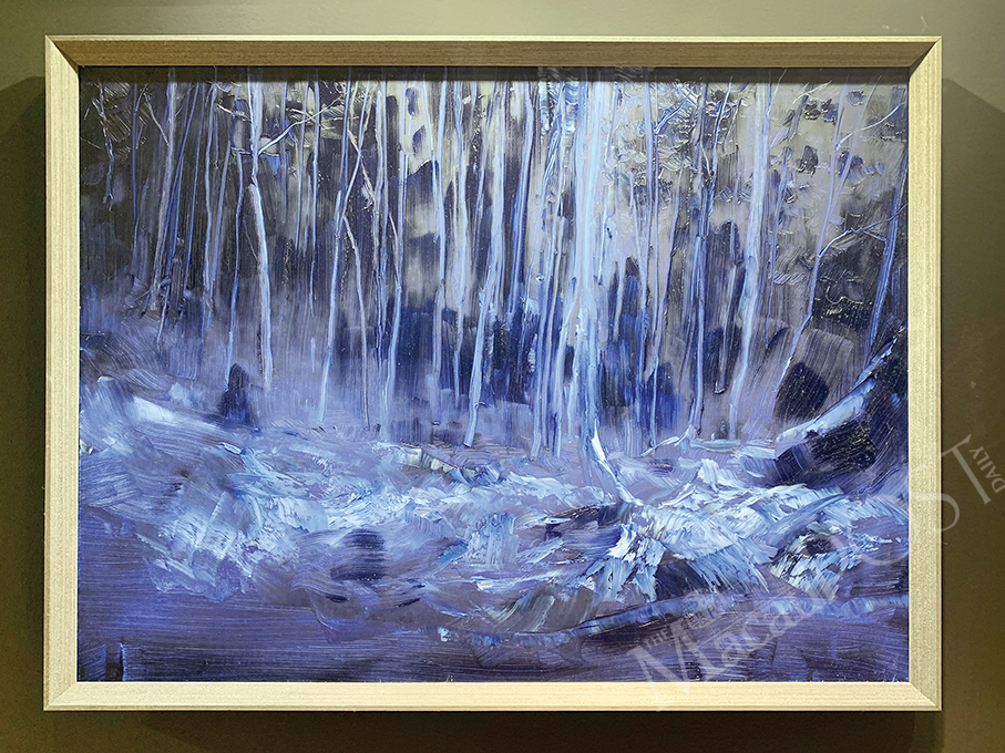 According to the brochure, Lai’s landscape collection selects hues that are close to black and white, adding that his waterfall paintings use “silk texture” on the waterfalls which contrast with the black rocks on both sides of the cascade.