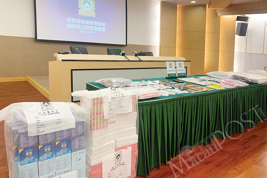 The Judiciary Police conducted intelligence exchanges with the Public Security Bureau (PSB) in Zhuhai and identified the suspects. PJ officers took action on Sunday and arrested the eight suspects at their homes. They went to two hotels in the city centre and took the 29 sex workers as well as the eight suspects to a police station for further investigation. The officers discovered that the gang rented a parking space in Zape for 2,000 patacas per month as a storage place to keep a large number of sex-work paraphernalia such as disposable towels and condoms. More than 80 items including smartphones, tablet computers, hard drives and suspected illegal earnings of 240,000 patacas were seized during the operation.
