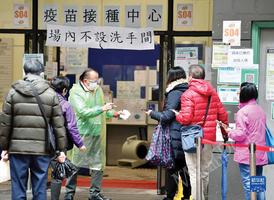 Residents queue to get vaccinated against the novel coronavirus in Jordan in Hong Kong yesterday amid the city’s current COVID-19 outbreak. Photo: Xinhua
