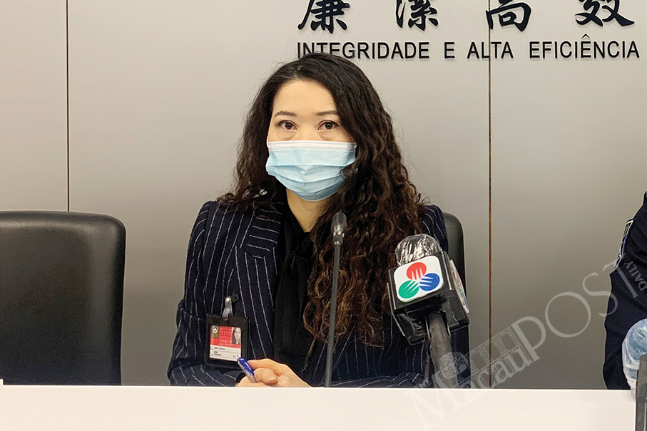 Judiciary Police (PJ) spokeswoman Lei Hon Nei looks on during yesterday’s press conference at a Public Security Police (PSP) pressroom. Photo: Camy Tam