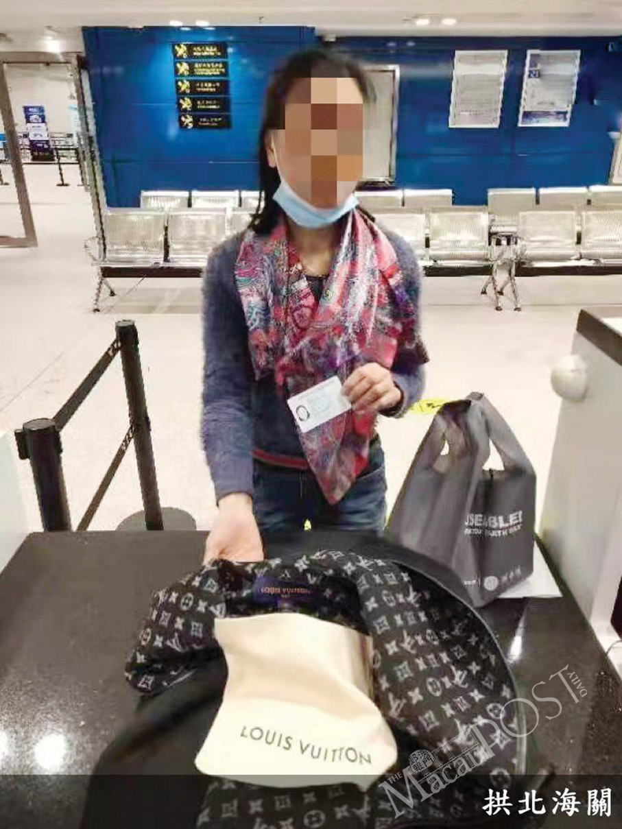 Gongbei Customs said in a statement yesterday that a local woman was caught smuggling for the third time in a span of one year, this time at Qingmao checkpoint on Sunday, adding that this is the first time since the checkpoint’s opening that customs officers caught a three-time parallel trade offender.