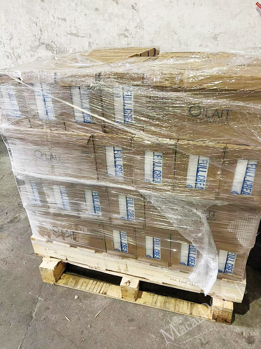 This undated handout photo provided by the Municipal Affairs Bureau (IAM) yesterday shows a refrigerated milk batch’s external packaging covered in wrapping film.