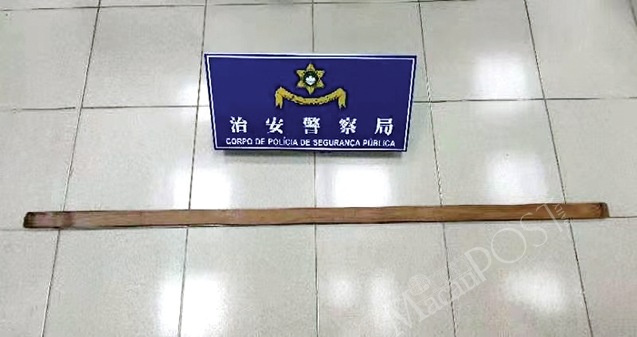 This undated handout photo provided by the Public Security Police (PSP) yesterday shows the wooden stick used by the animal abuse suspect to beat the kitten to death.