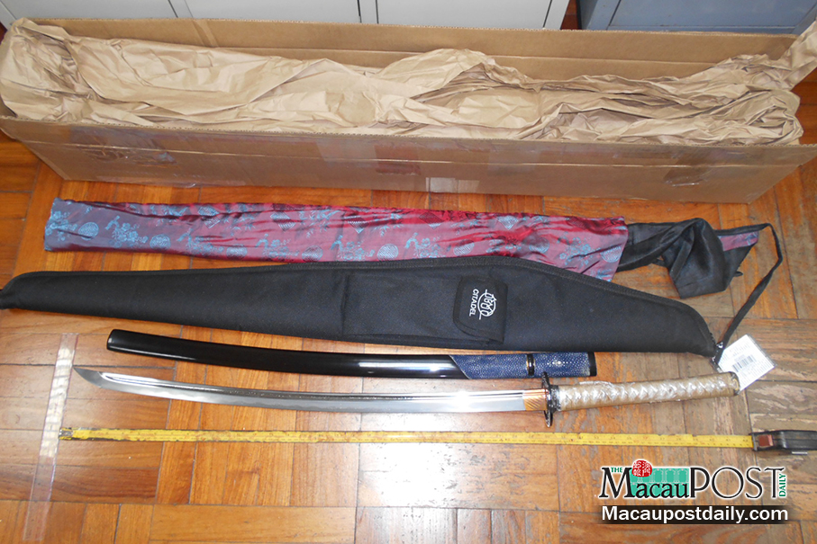 The Macau Customs Service said in a statement yesterday that its officers have found a 100-centimetre-long katana (samurai sword) in a parcel addressed to a South African man living in Macau, adding that the case would be transferred to the Public Prosecution Office (MP) for further questioning.