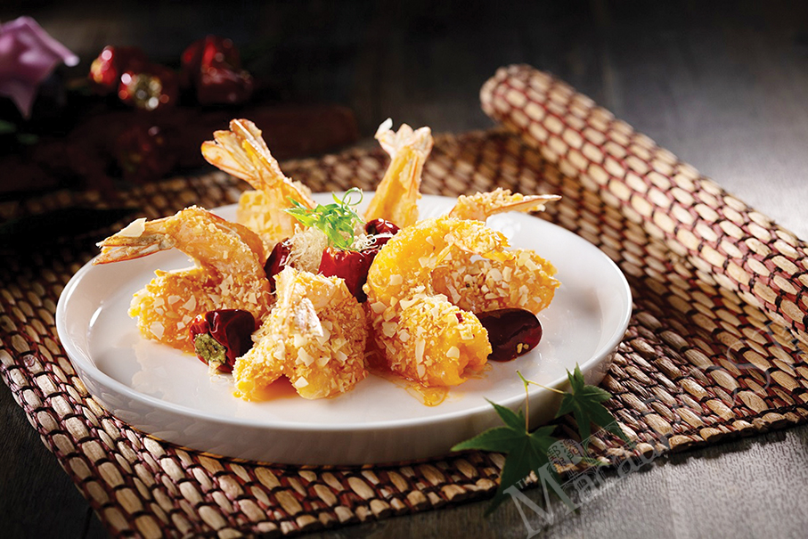 This undated handout photo provided by The Londoner shows the North Palace’s Beijing-style crispy prawns with nuts, sweet and sour sauce.