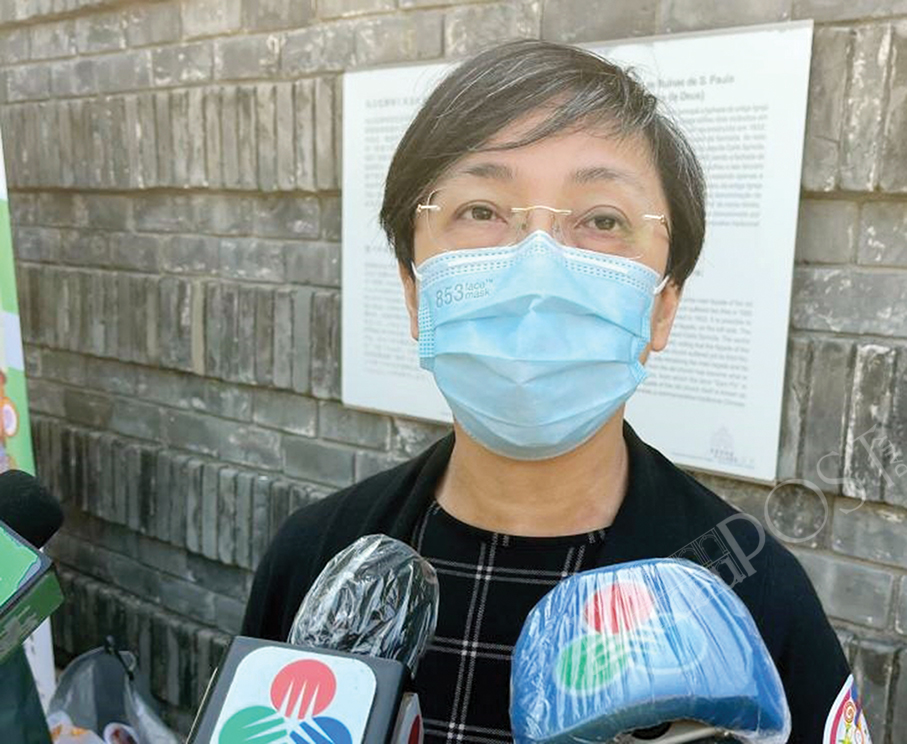 Maria Helena de Senna Fernandes talks to media on the sidelines of a Macau Borderless Youth Association event at the Ruins of St. Paul on Saturday. – Photo courtesy of TDM