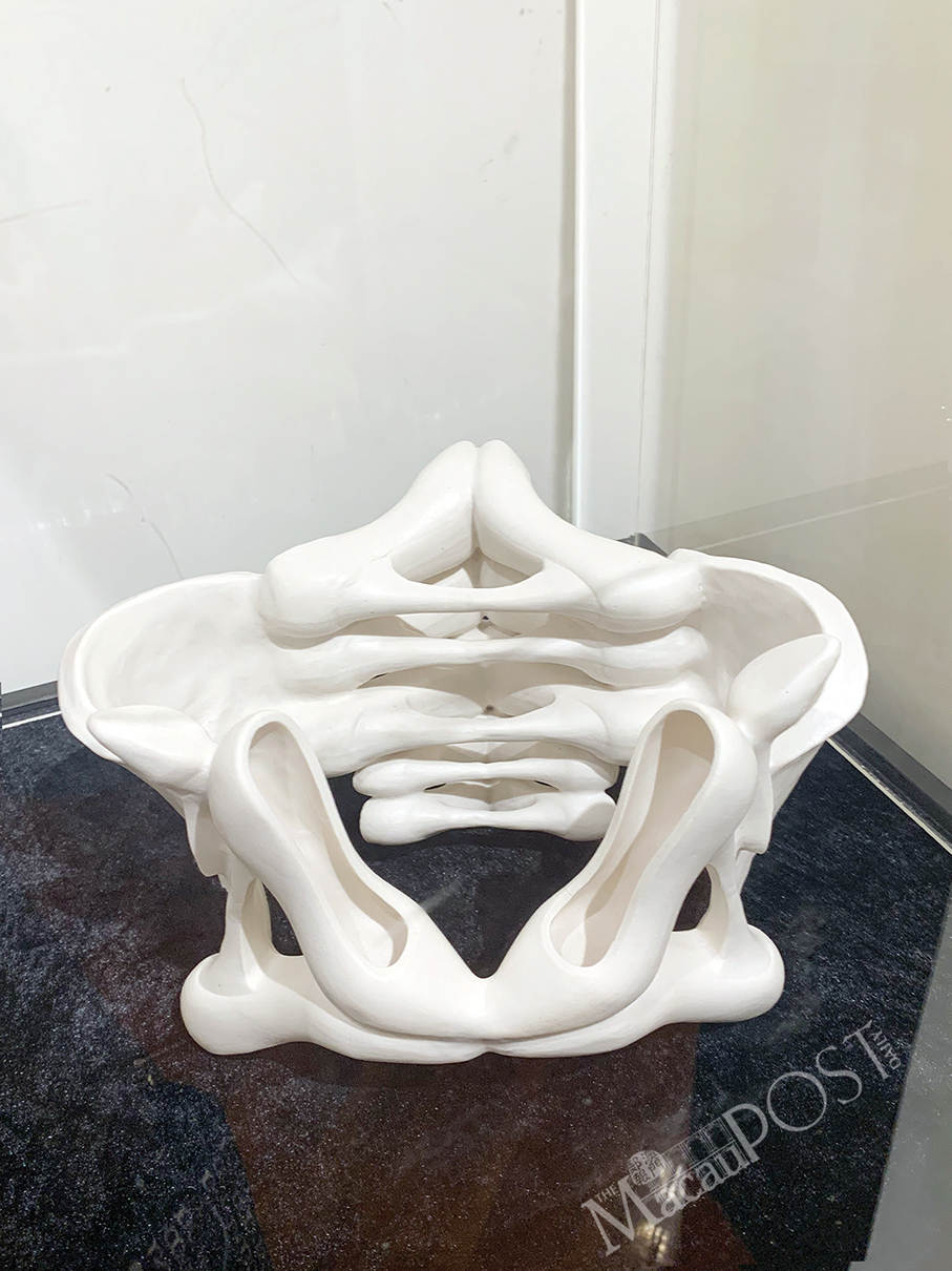 The “Skeleton” series is mainly based on the perspective of medical symptoms. The exhibition’s white bone shoes are used to simulate the physical diseases caused by the sequelae of high heels. Through repeated stacking and combinations, the shapes of bones are established to metaphorise the social framework and express a certain desire hidden in our genes, the statement points out.