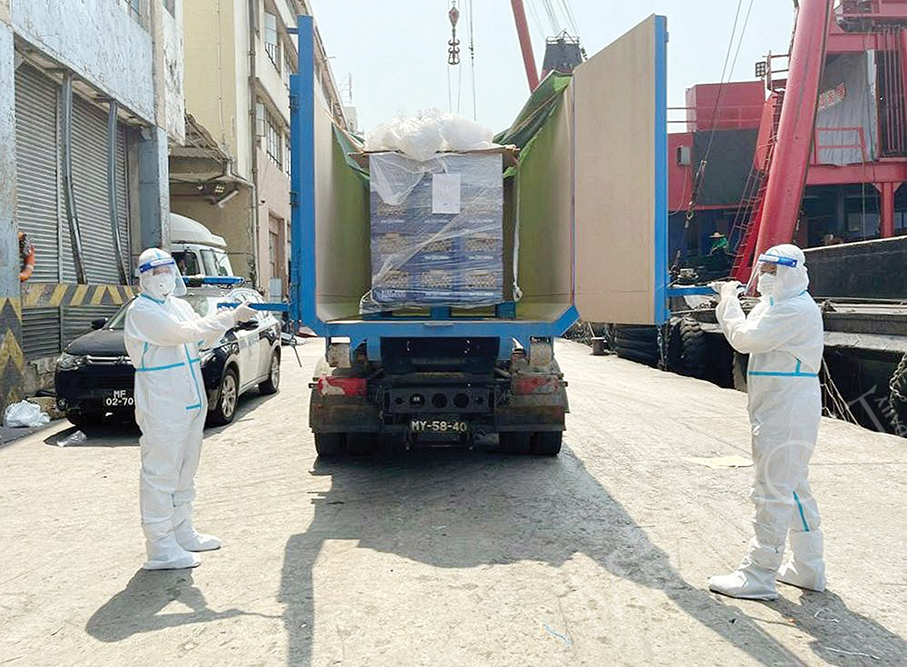 This undated handout photo provided by the bureau yesterday shows the products the wrapping film of which tested positive for COVID-19 being unloaded from the vehicle.
