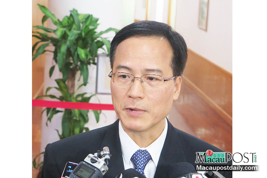 Social Security Fund (FSS) President Iong Kong Io speaks to reporters at the legislature yesterday. Photo: Tony Wong
