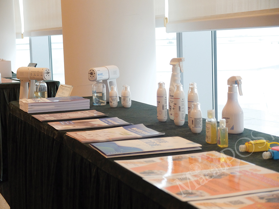 Disinfection items by Nanometals Technology are displayed at yesterday’s event.