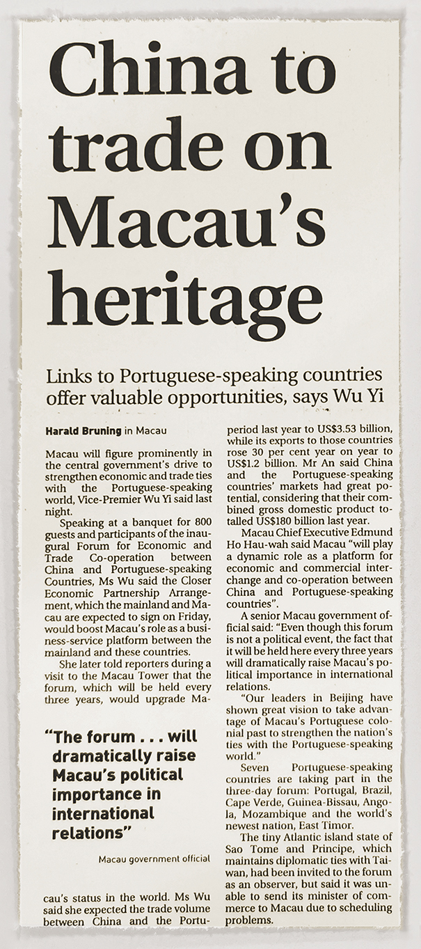I covered the inaugural meeting of Forum Macau on October 12, 2003 as the South China Morning Post’s resident correspondent at that time. Much to my surprise, the editor put my article, headlined “China to trade on Macau’s heritage”, as the number-one story on the front page (I had expected the article to appear on one of the inside pages).
