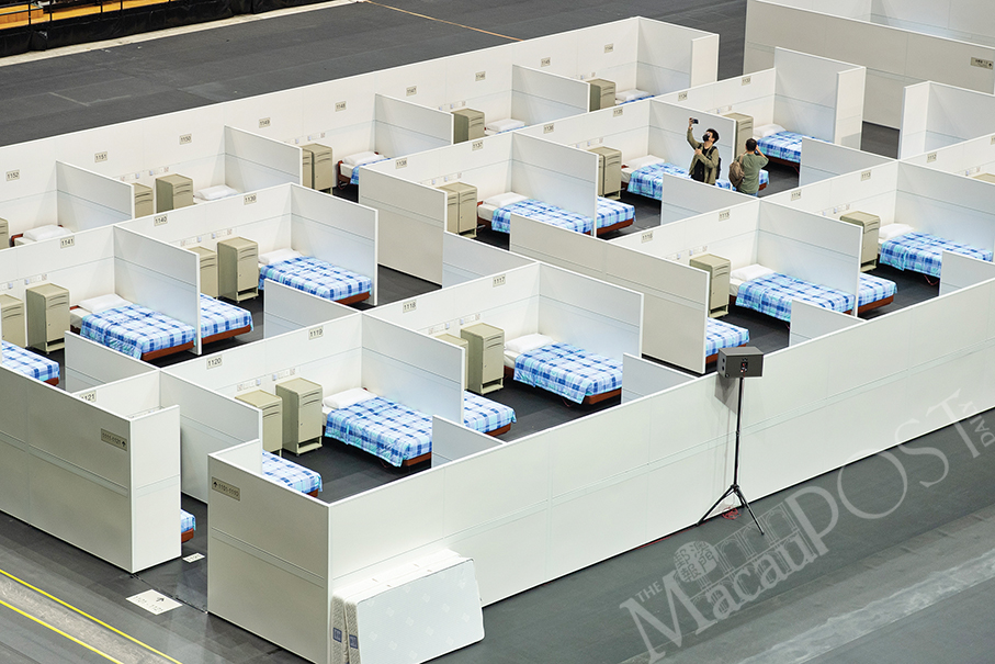 Lei underlined yesterday that the Health Bureau has set up the temporary facilities at the East Asian Games Dome’s Arena at the lowest possible cost to enable the simulation of the real operation of the makeshift hospital. Health workers will start working there later this month to make use of the temporary facilities to help them design and draw up the work and service procedures for the makeshift hospital’s operation, before a drill involving various public entities is held there, according to Lei.