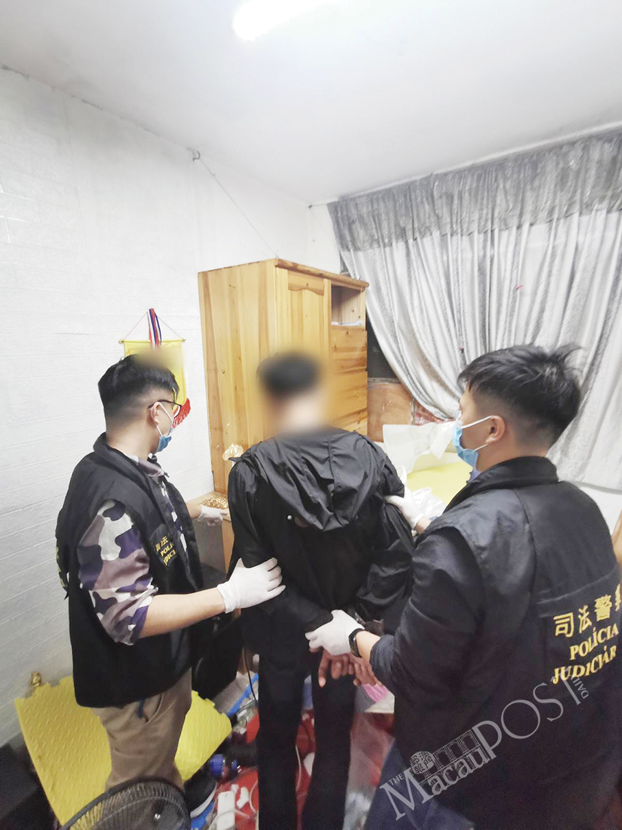 Ho said that the police recently received a tip-off that a man was selling drugs in the northern district. Ho added that the police identified the suspect and his address, and they put a residential building in Rua Nove do Bairro Iao Hon (祐漢新村第九街) where he lived under surveillance on Monday afternoon.