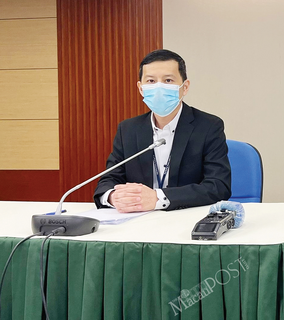Judiciary Police (PJ) spokesman Chan Wun Man looks on during Monday’s regular press conference at the PJ headquarters.