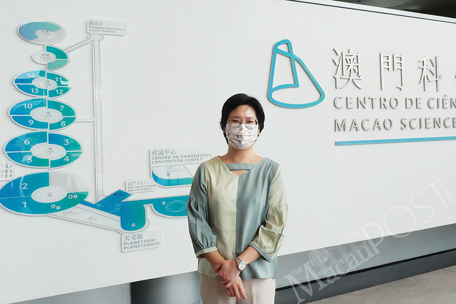 “The Macao Science Centre’s” Publicity Department Chief Bonnie Fung Shang Yan poses at the centre’s lobby in Nape yesterday. Photo: Rui Pastorin
