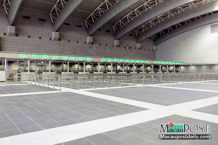 This photo taken yesterday shows immigration counters at the Pac On Ferry Terminal in Taipa.