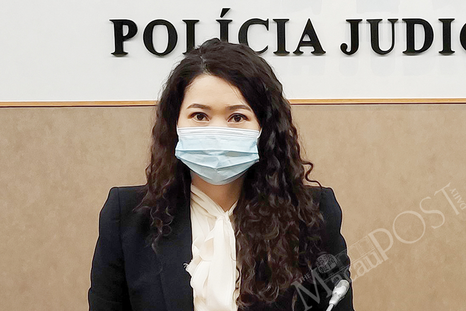 Judiciary Police (PJ) spokeswoman Lei Hon Lei looks on during yesterday’s regular press conference at the PJ headquarters. Photo: William Chan