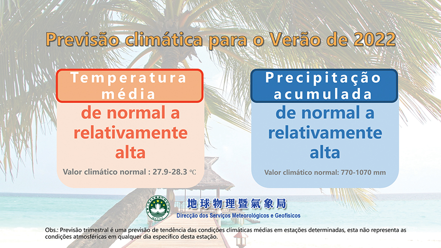 This poster by the Macau Meteorological and Geophysical Bureau (SMG) released yesterday shows Macau’s average temperature and precipitation forecast for this summer.