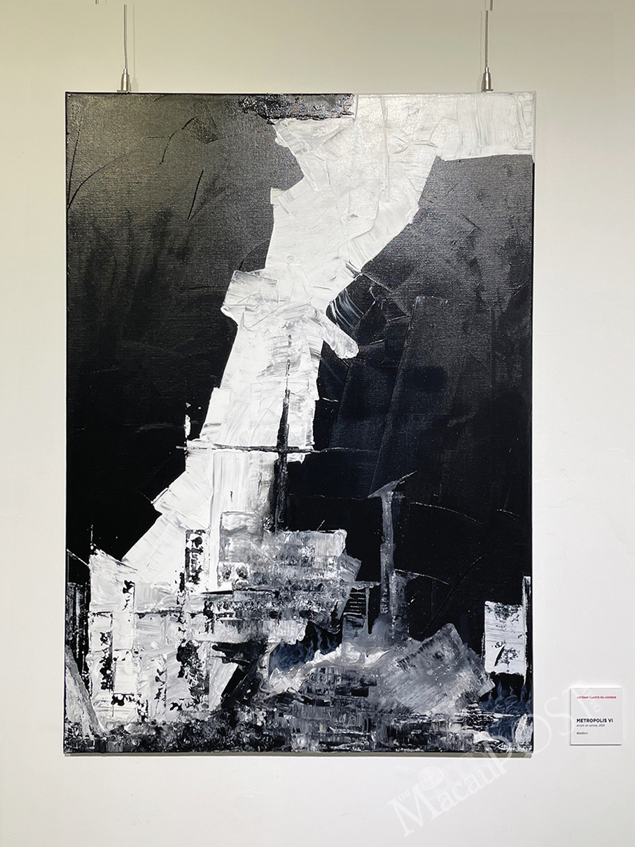 According to the statement, the works record the artist’s footsteps in Macau during his stay here for 15 years. At the same time, the exhibition has become the “endpoint” of his stay in Macau. The works comprise his observations, reflections and expectations about the city’s environment and future, and he used black-and-white paintings to show the changes in Macau, the statement added.