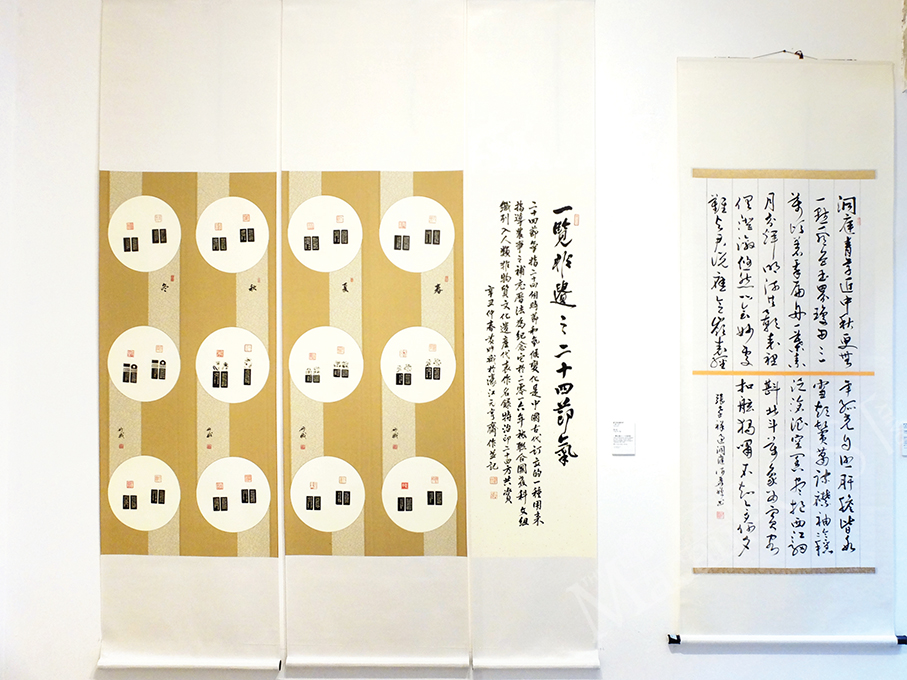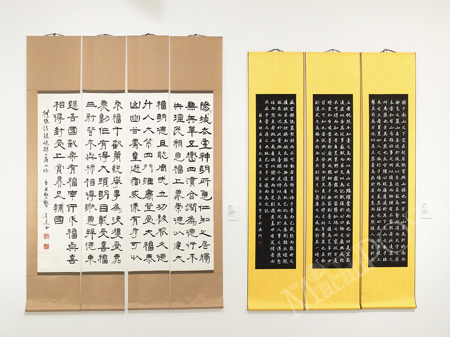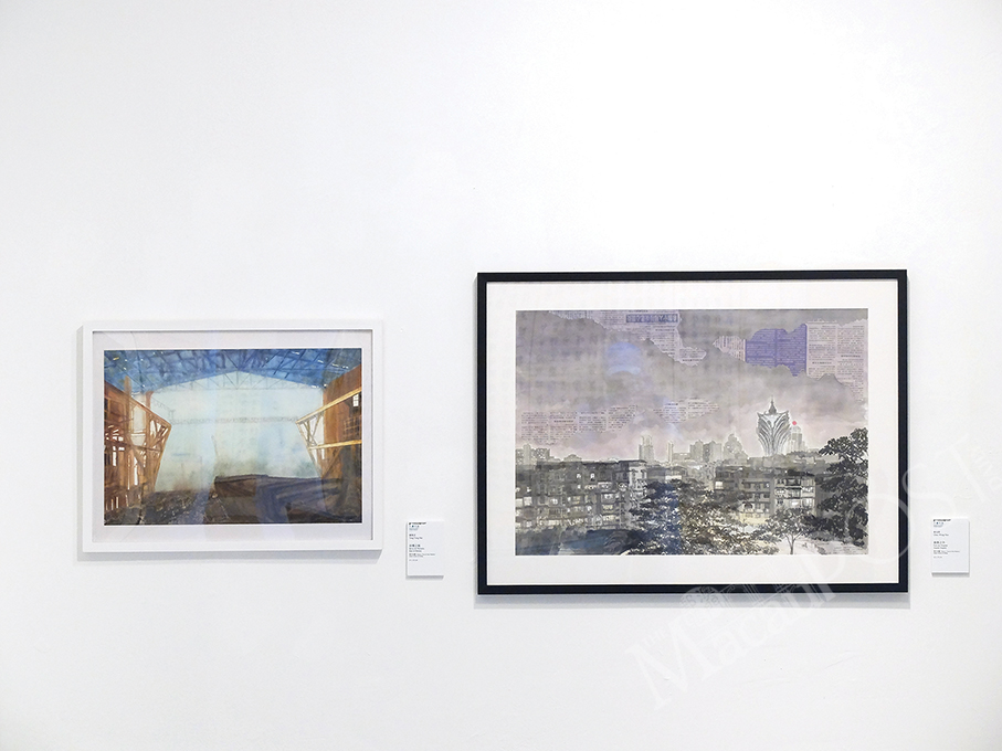 Various works showcased at the Collective Exhibition of Macao Artists exhibited at the Tap Seac Gallery in Praça do Tap Seac.