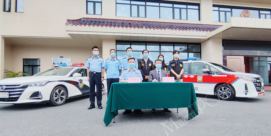 Police officers from Guangdong and Macau pose after finalising the paperwork for the fraud suspect’s transfer back to Macau, at the Barrier Gate checkpoint yesterday afternoon.