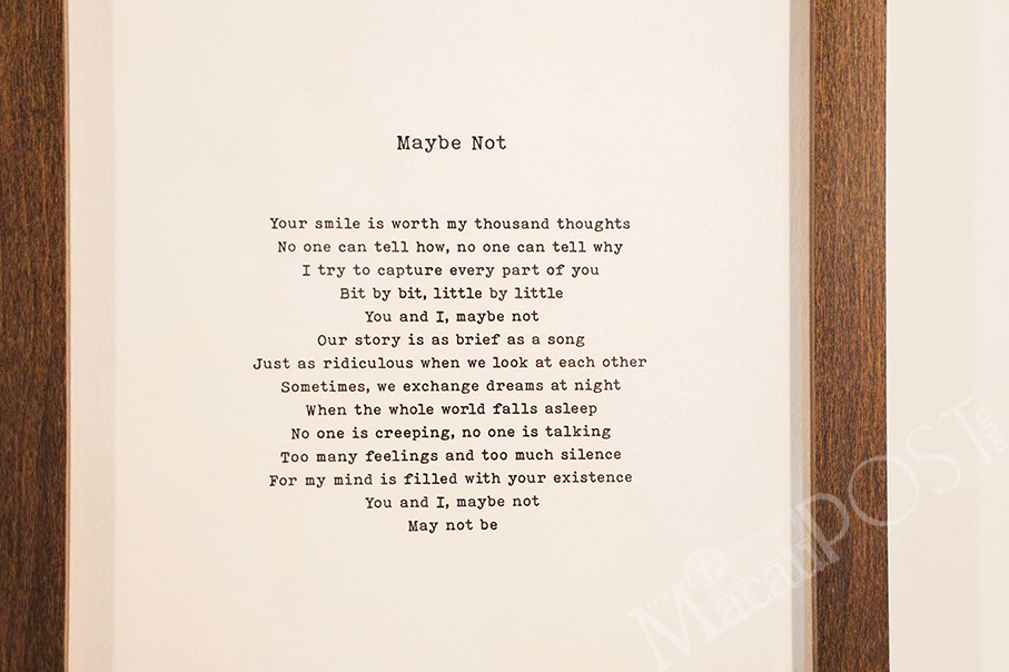 According to a recent statement by the Macau Association for the Advancement of Diversified Development (MAADD), around 50 artworks, including paintings and English-language poems are on display in an exhibition titled “In the Name of Love” at Mong-Ha Villas that runs until June 28.