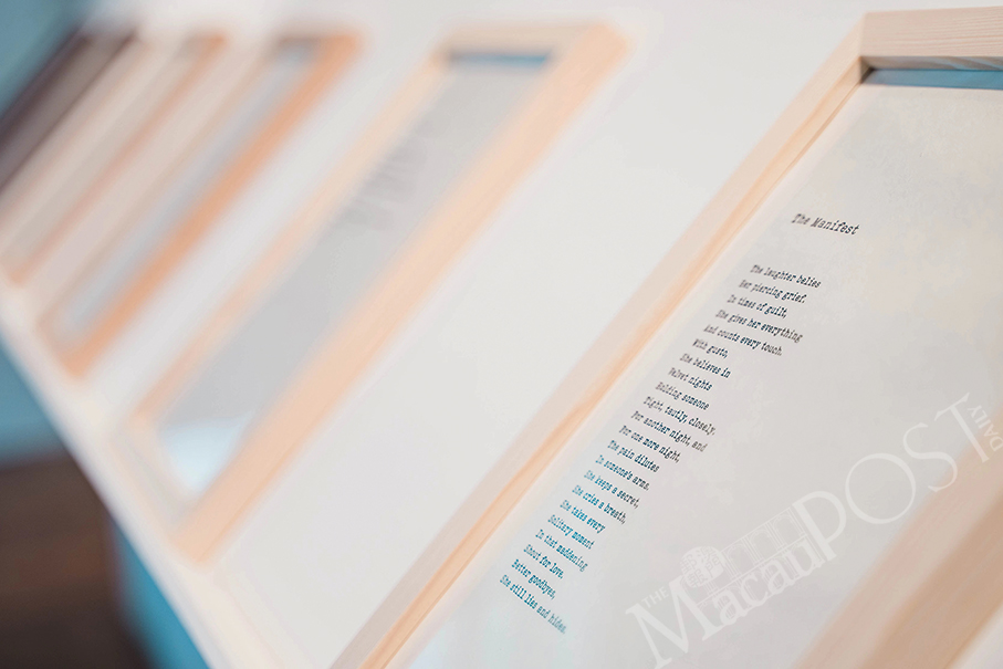 The statement said that the works were created by local artist Lei Ka Man who hopes to promote English-language poems in Macau through art and words while injecting more colours and energy into the lives of people who visit the exhibition. The statement added that the exhibition’s theme revolves around “Love”, in which Lei uses abstract paintings and words to express love on different levels and with different feelings and aspects.