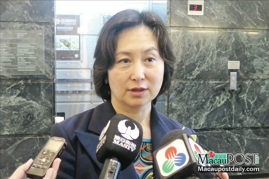 This photo taken on June 28 shows MGM China Co-chairperson and Executive Director Pansy Ho Chiu King speaking to reporters on the sidelines of a innovation forum at Macau Tower. Photo: Davis Ip