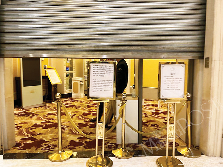 This photo taken yesterday at the entrance of Rio Casino shows a notice announcing that the casino and slot machines operations have been suspended and that the casino has been closed.