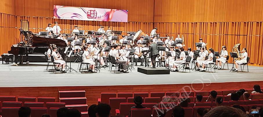 Pui Ching Symphony Band performs an encore after receiving a thunderous applause from the audience at the Macau Cultural Centre (CCM) on Saturday. – Photo: William Chan