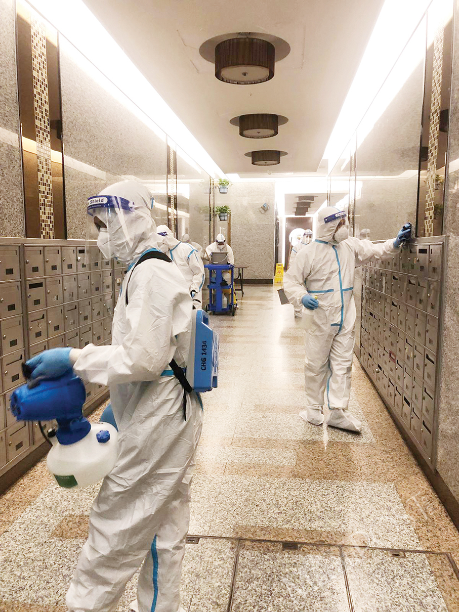 Large-scale cleaning and disinfection were conducted in the residential buildings of confirmed COVID-19 cases, which was completed yesterday, according to a statement by the Municipal Affairs Bureau (IAM).