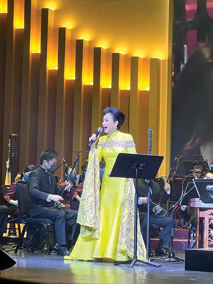 Wang performed at the closing concerts with over 50 musicians from The Macao Chinese Orchestra under conductor Hu. The Macau Post Daily was lucky to obtain a ticket. Wang told the audience that Ms. Bao Bei-li (鮑蓓莉), who passed away in February 2020, was her first singing teacher. She learnt a lot from Bao singing Mandarin art and folk songs. Wang performed Bao’s popular song called “Send Me a Rose” (送我一支玫瑰花) at the concert. Wang also sang some of her classic TV theme hit songs such as Young’s Female Warrior (楊門女將) and Limelight Years (華麗轉身) composed by her long-time music partners Joseph Koo Kar-fai (顧嘉煇) and Anthony Lun Wing-leung (倫永亮) respectively.