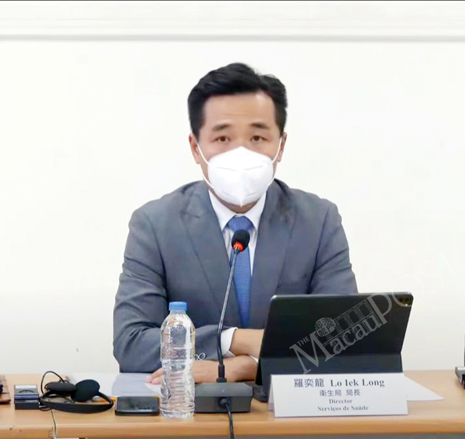 Health Bureau (SSM) Director Alvis Lo Iek Long addresses yesterday’s press conference about the city’s current COVID-19 outbreak. Photo: Tony Wong