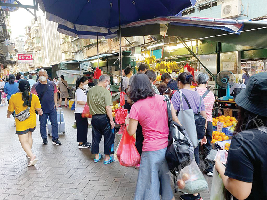 Residents queue to buy fruit at a stall in Rua da Praia do Manduco yesterday, commonly known as Ha Van in Cantonese. Photo: Yuki Lei