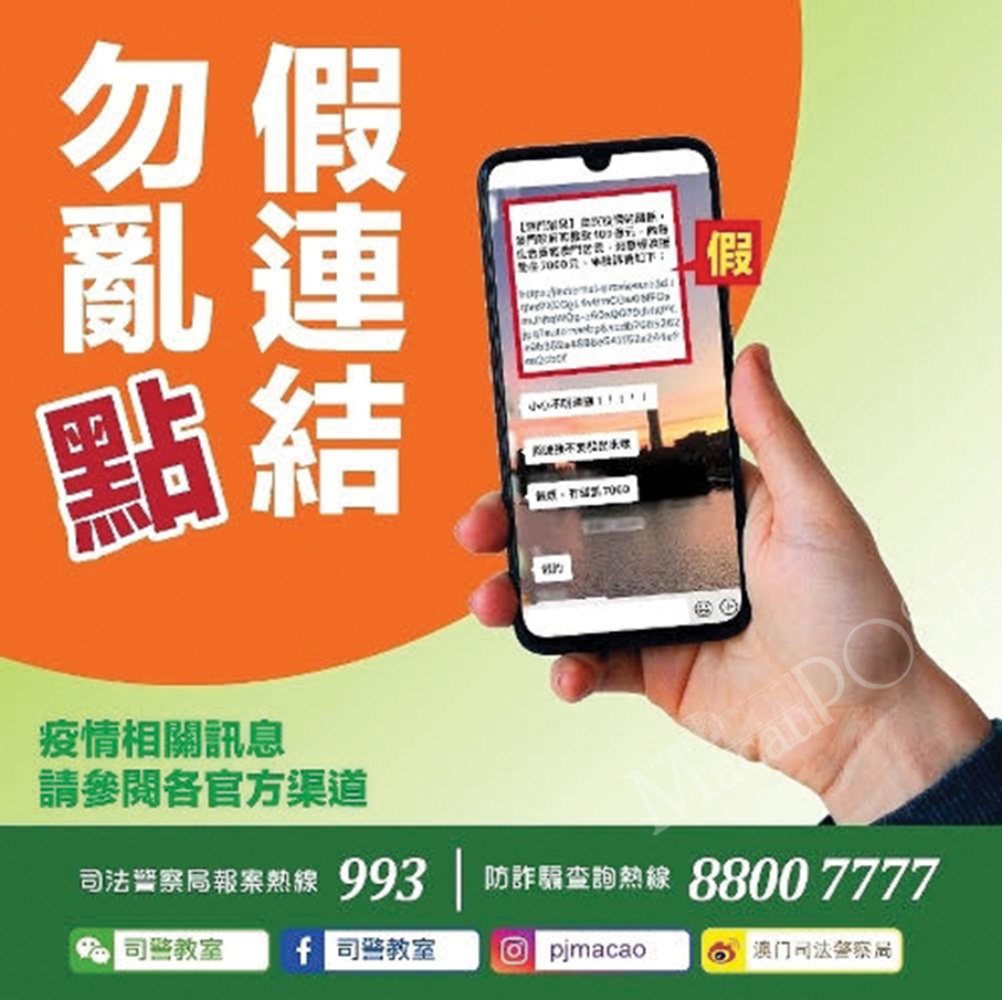 According to the statement, the police received a report from a member of the “Friends of Crime Prevention” group pointing out that a person in a social media chat group had forwarded a suspected fraud message, which falsely claimed that “the Macau government will distribute a further 7,000 patacas of financial support to eligible local residents”.