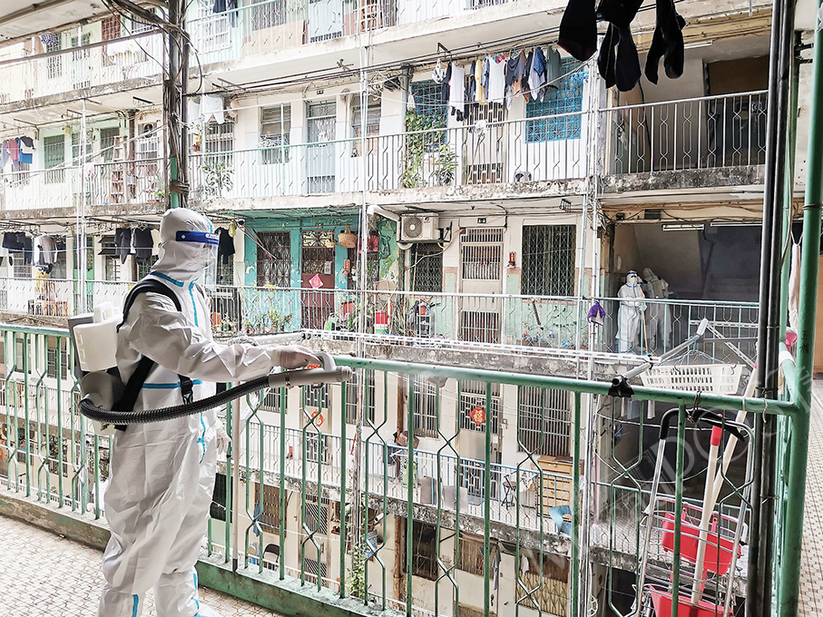 The Municipal Affairs Bureau (IAM) said in a statement yesterday that it is continuing to enhance disinfection works in locked-down buildings (“Red Code Zones”) such as San Mei On Bldg. and Kat Cheong Bldg., but urged people in the affected areas to cooperate as rubbish is still being discarded in communal areas.