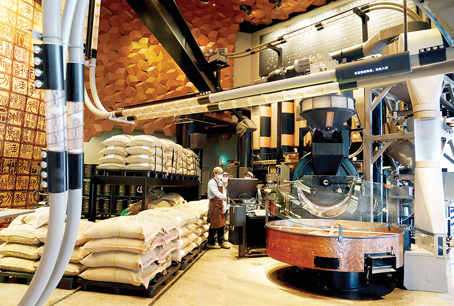 Staff members work at the Starbucks Reserve Roastery in Shanghai last month. – Xinhua