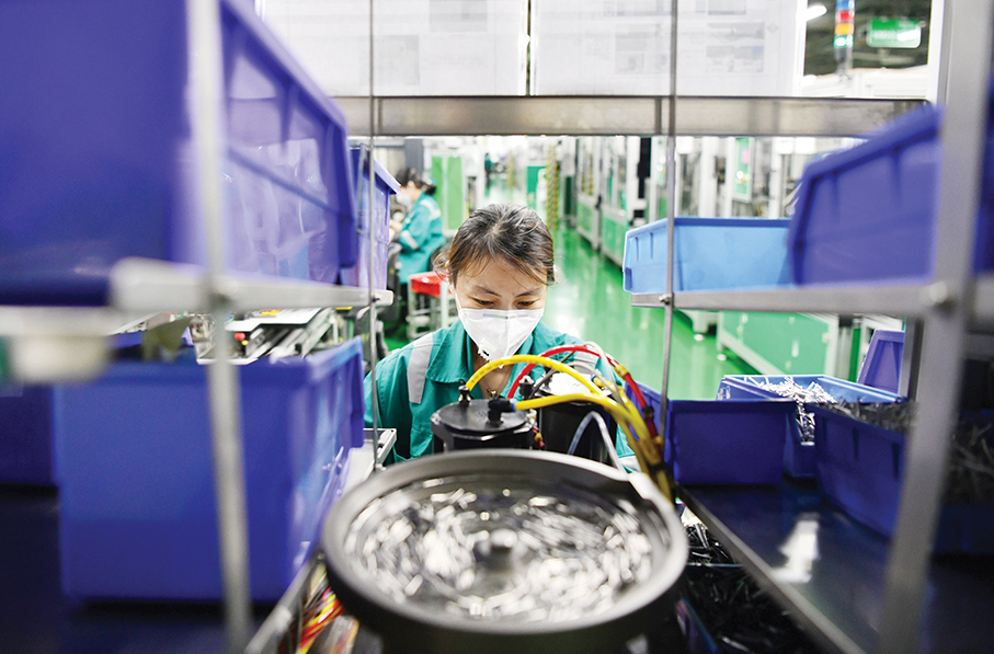 An employee works at Schneider Electric Low Voltage (Tianjin) Co., Ltd. in Tianjin early this year. – Xinhua
