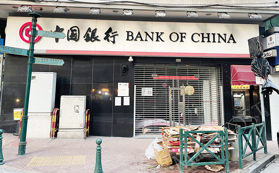 This photo taken yesterday shows the Bank of China in Rua da Praia do Manduco closed during the government’s consolidation period. – Photo: Yuki Lei