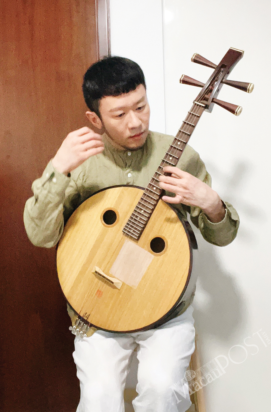 Xie Bowen poses with his Huqin during an online session on July 20.