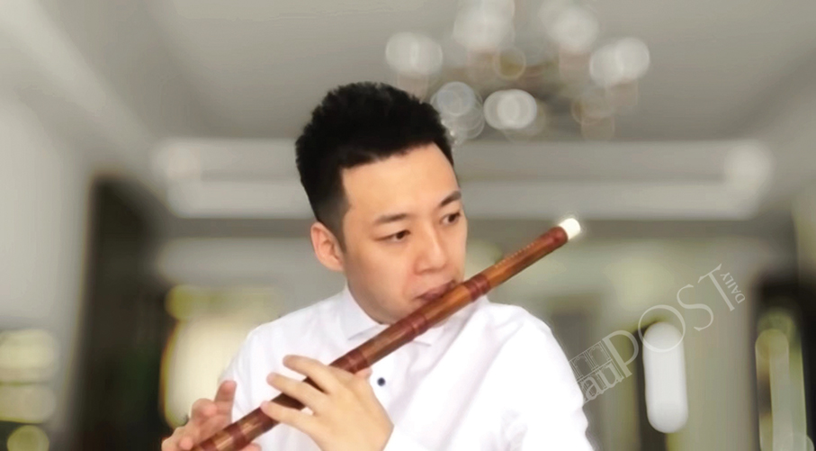 Wei Zidong plays Dizi during an online session on July 14.
