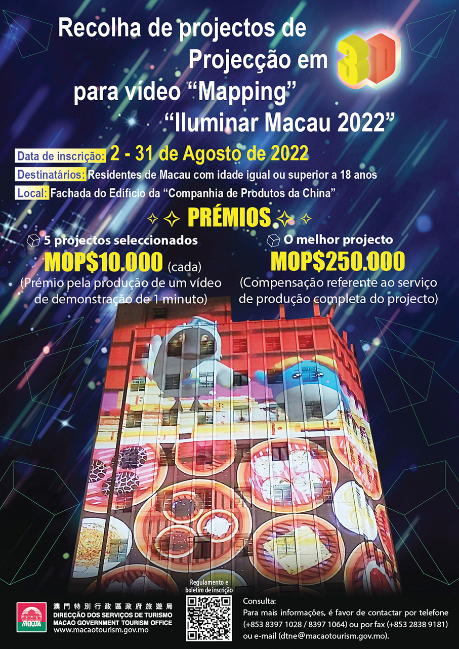The Macau Government Tourism Office (MGTO) said in a statement yesterday that it is calling for submissions of 3D mapping projects for the “Bright up Macao 2022” in December.